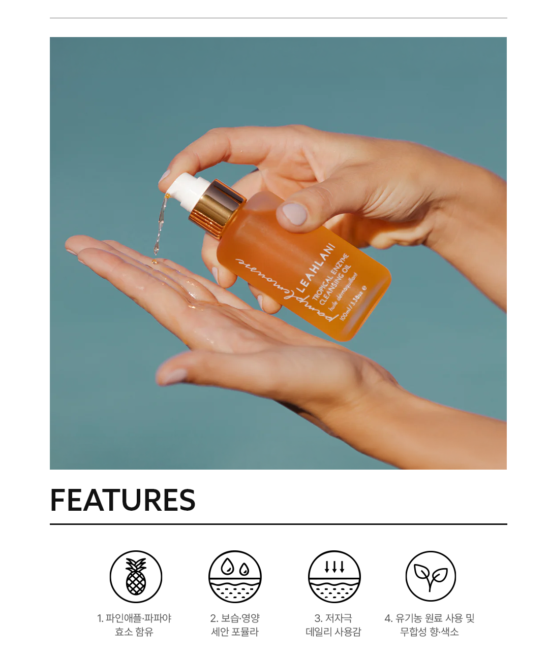 열대 과일에서 유래한 효소 성분과 식물 오일이 결합되어 노폐물은 깨끗하게 제거하면서도 피부의 수분과 유분 밸런스는 무너지지 않도록 도와줍니다.