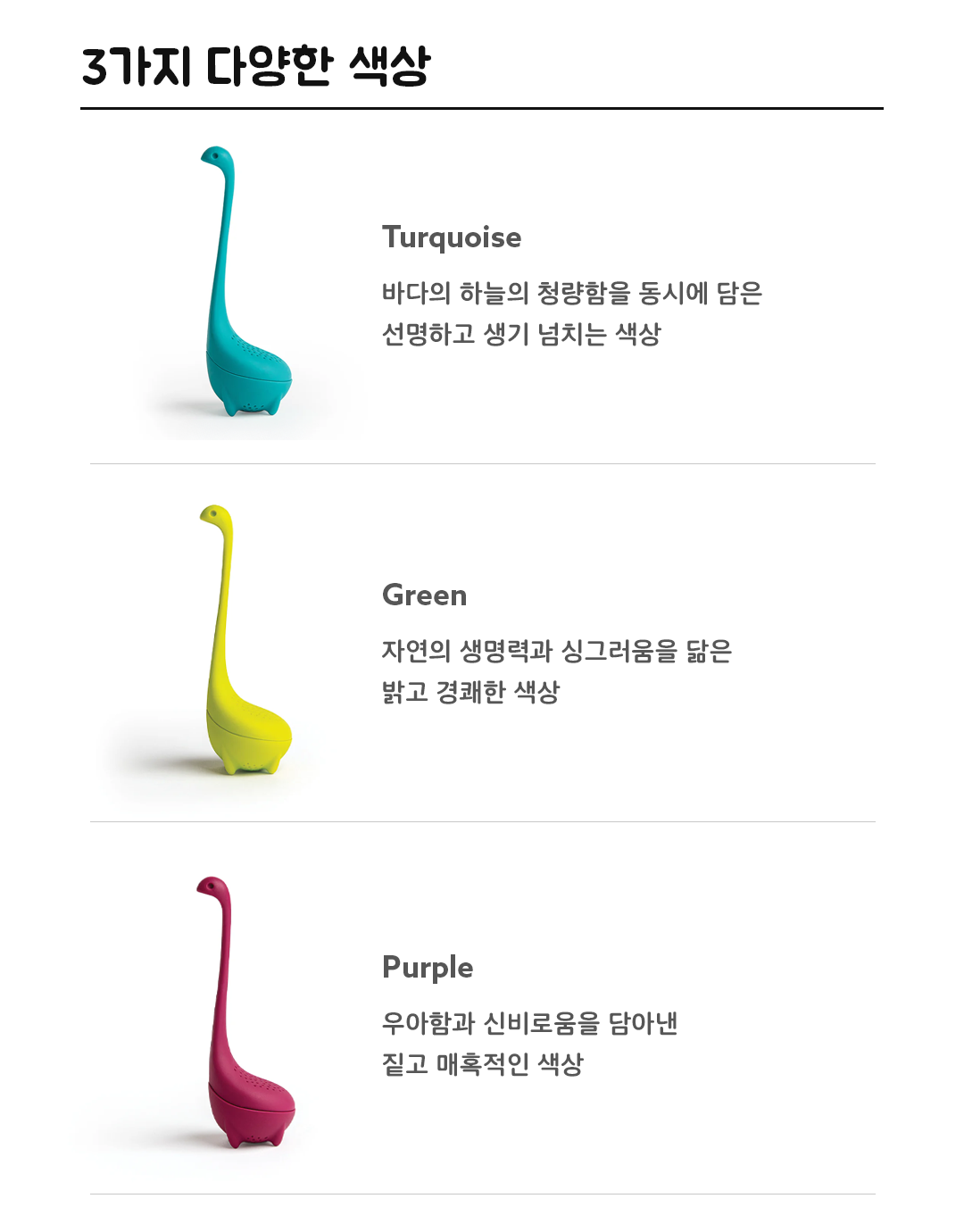 긴 목을 가진 아기 공룡의 사랑스러운 모습으로 디자인되어, 찻잎을 우려내는 실용적인 기능과 함께 차 시간을 더욱 특별하게 만들어줍니다.