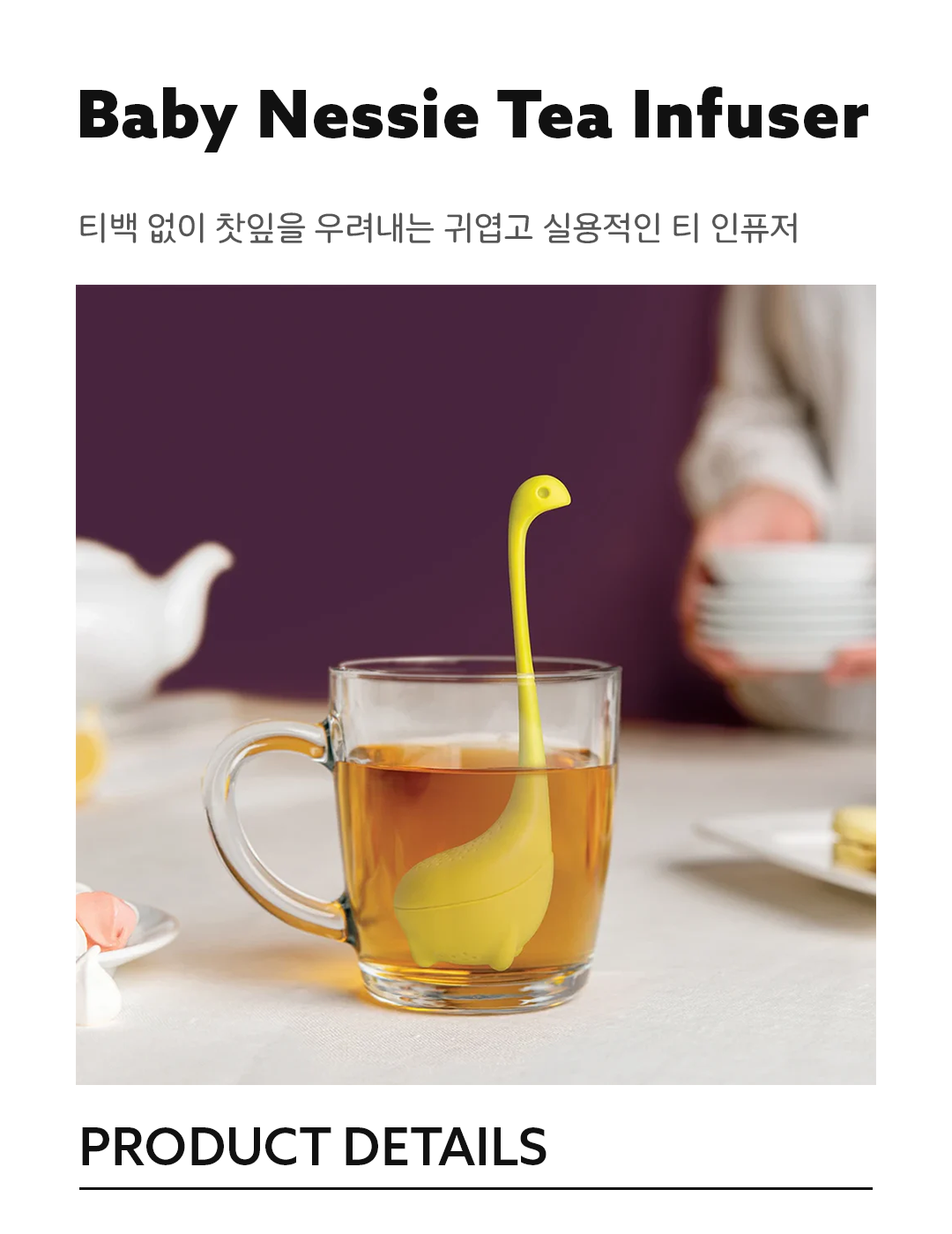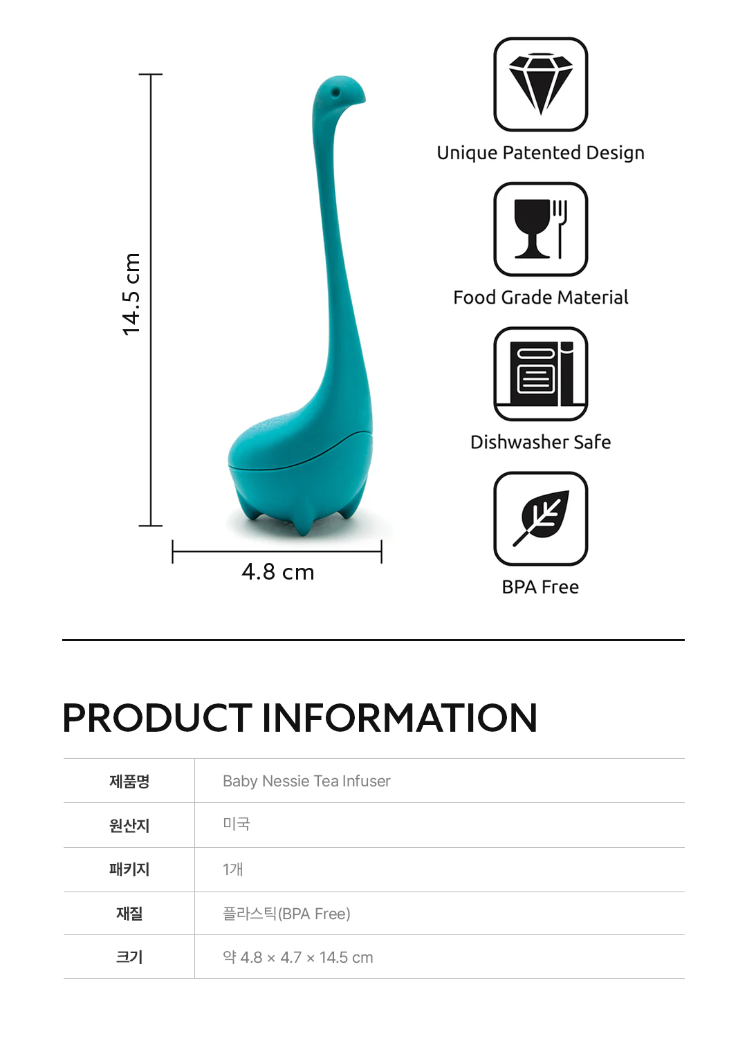 스코틀랜드 네스호의 신비로운 전설에서 영감을 받은 Baby Nessie는 차 한 잔에 마법 같은 경험을 선사하는 실리콘 티 인퓨저입니다.