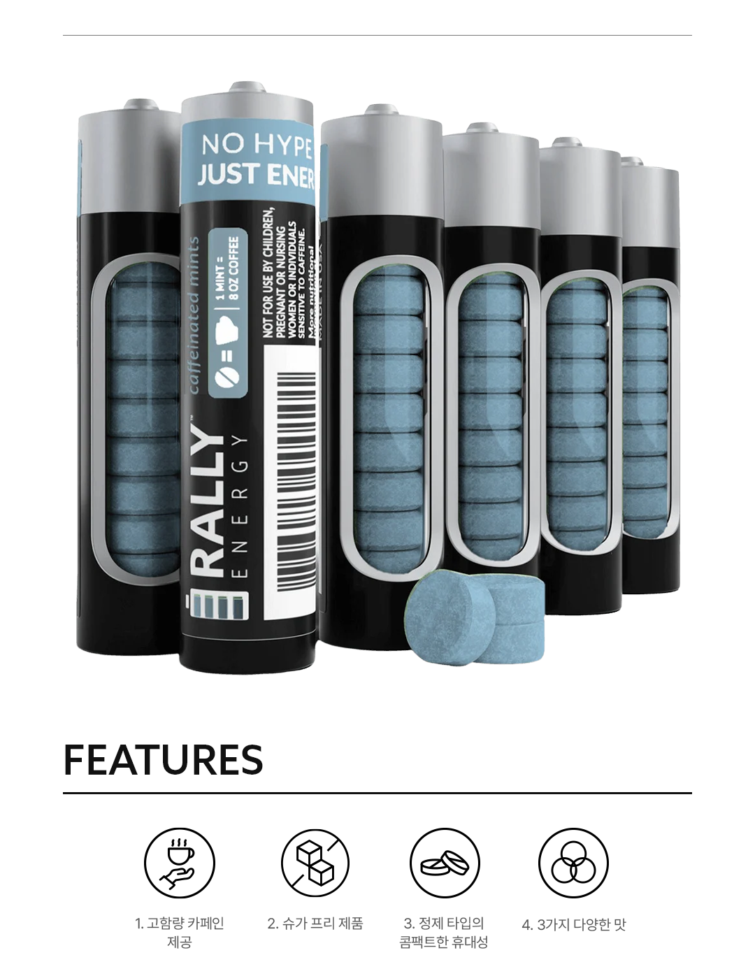Rally Energy는 "No Hype, Just Energy"라는 철학 아래 탄생한 미국의 혁신적인 에너지 민트 브랜드입니다.