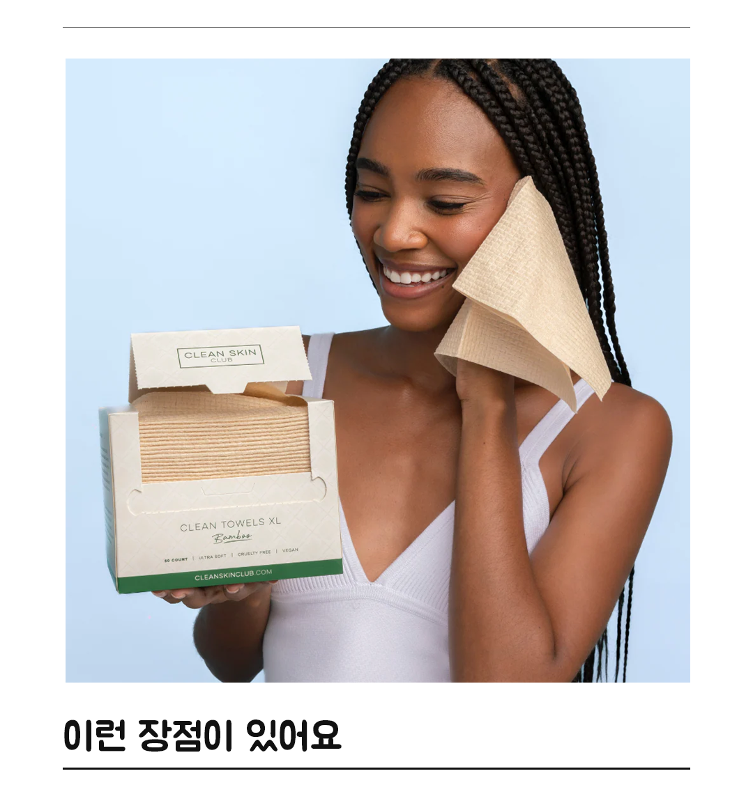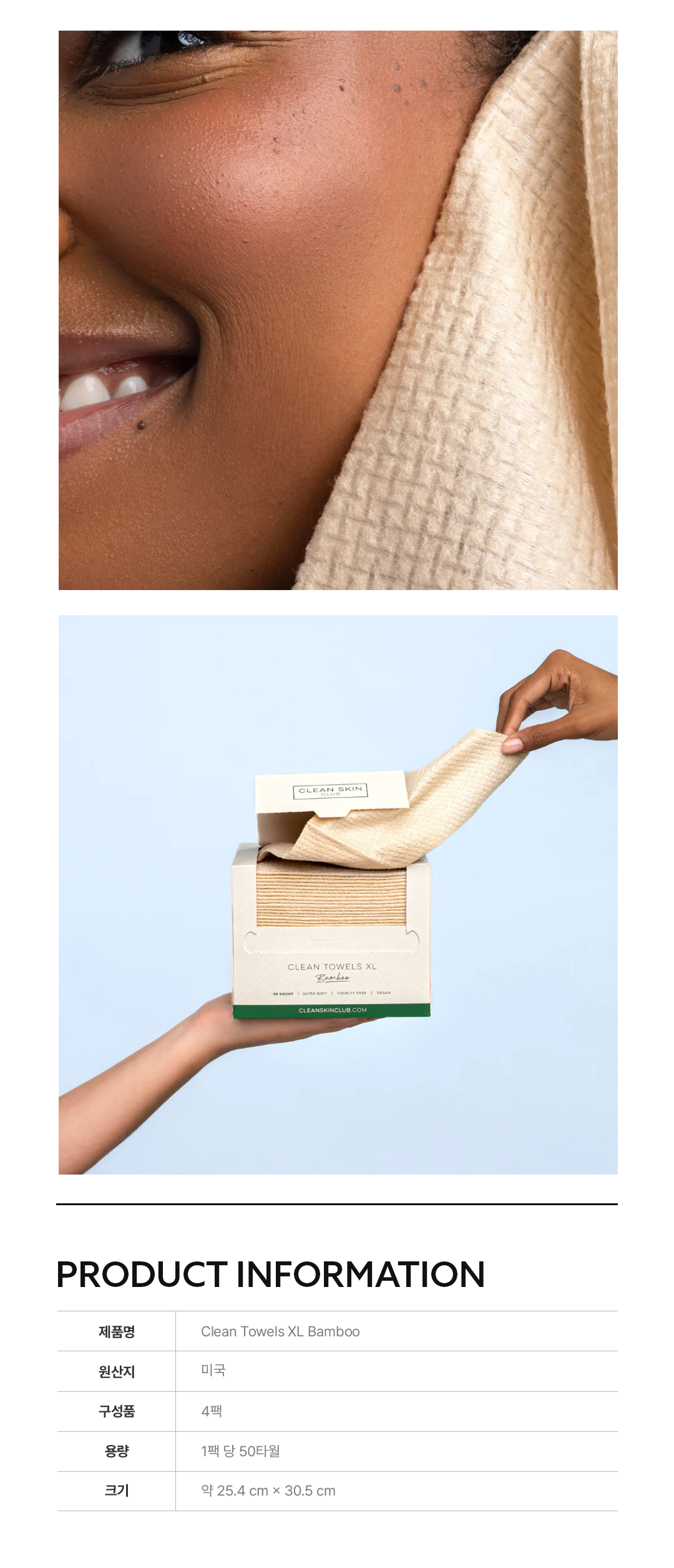 혁신적인 스킨케어 솔루션을 제시하는 Clean Skin Club의 Clean Towels XL Bamboo는 민감하고 성숙한 피부를 위해 특별히 개발된 프리미엄 일회용 페이셜 타월입니다.