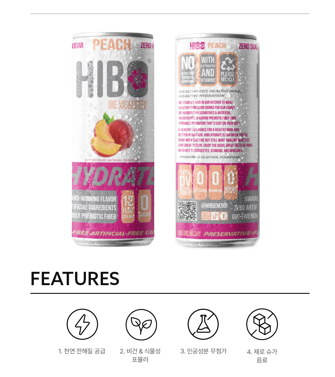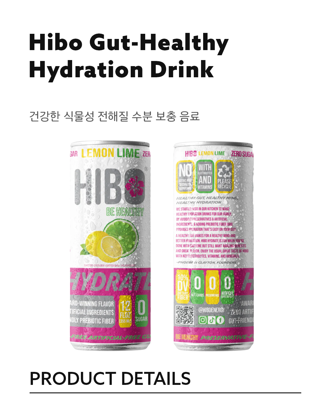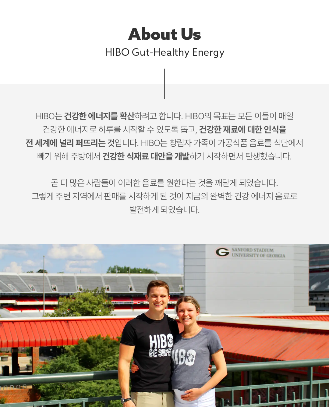 HIBO는 장 건강, 무설탕, 방부제 무첨가를 동시에 달성한 최초의 에너지 음료입니다.