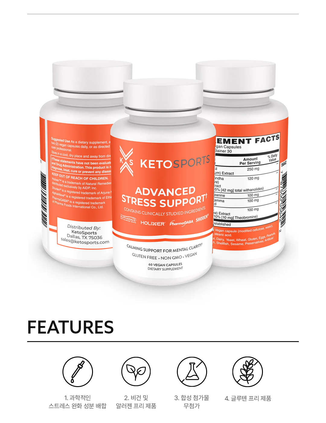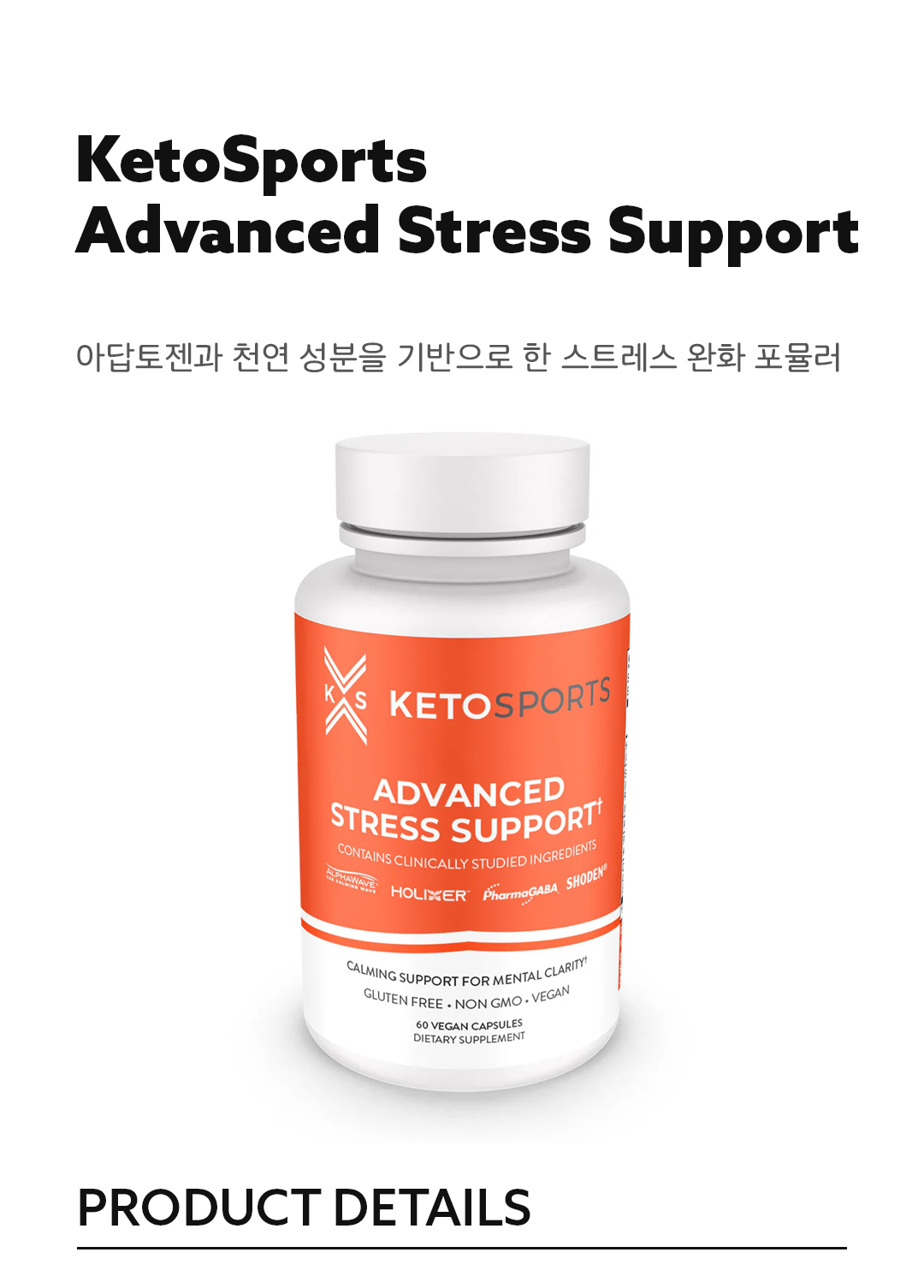 현대인의 스트레스 해결책 미국인의 스트레스 수준이 전 세계 평균보다 20% 높다는 현실에 주목하여 개발된 Advanced Stress Support는 자연스럽고 효과적인 스트레스 관리 솔루션입니다.