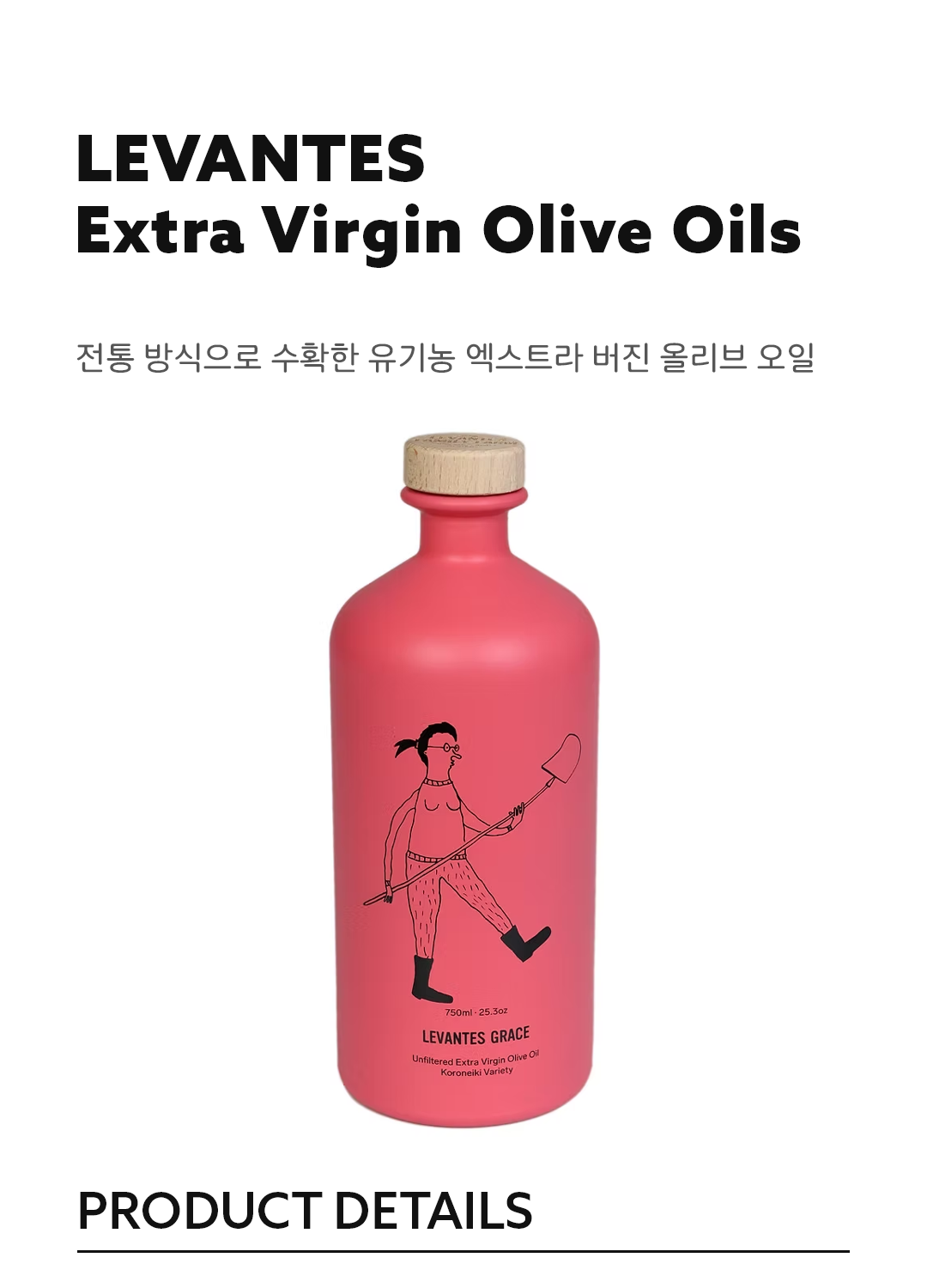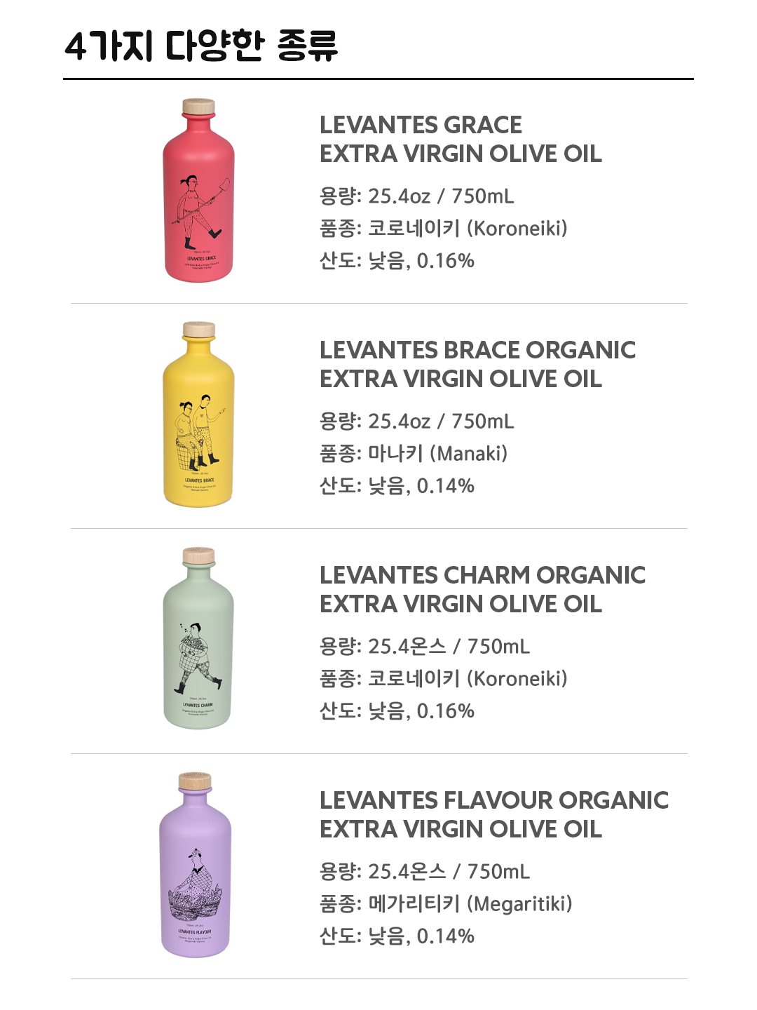 그리스 펠로폰네소스 지역의 햇살과 바람을 머금은 LEVANTES 엑스트라 버진 올리브오일은 전통적인 방식으로 수확한 최고급 올리브만을 냉압착 방식으로 짜낸 프리미엄 오일입니다.