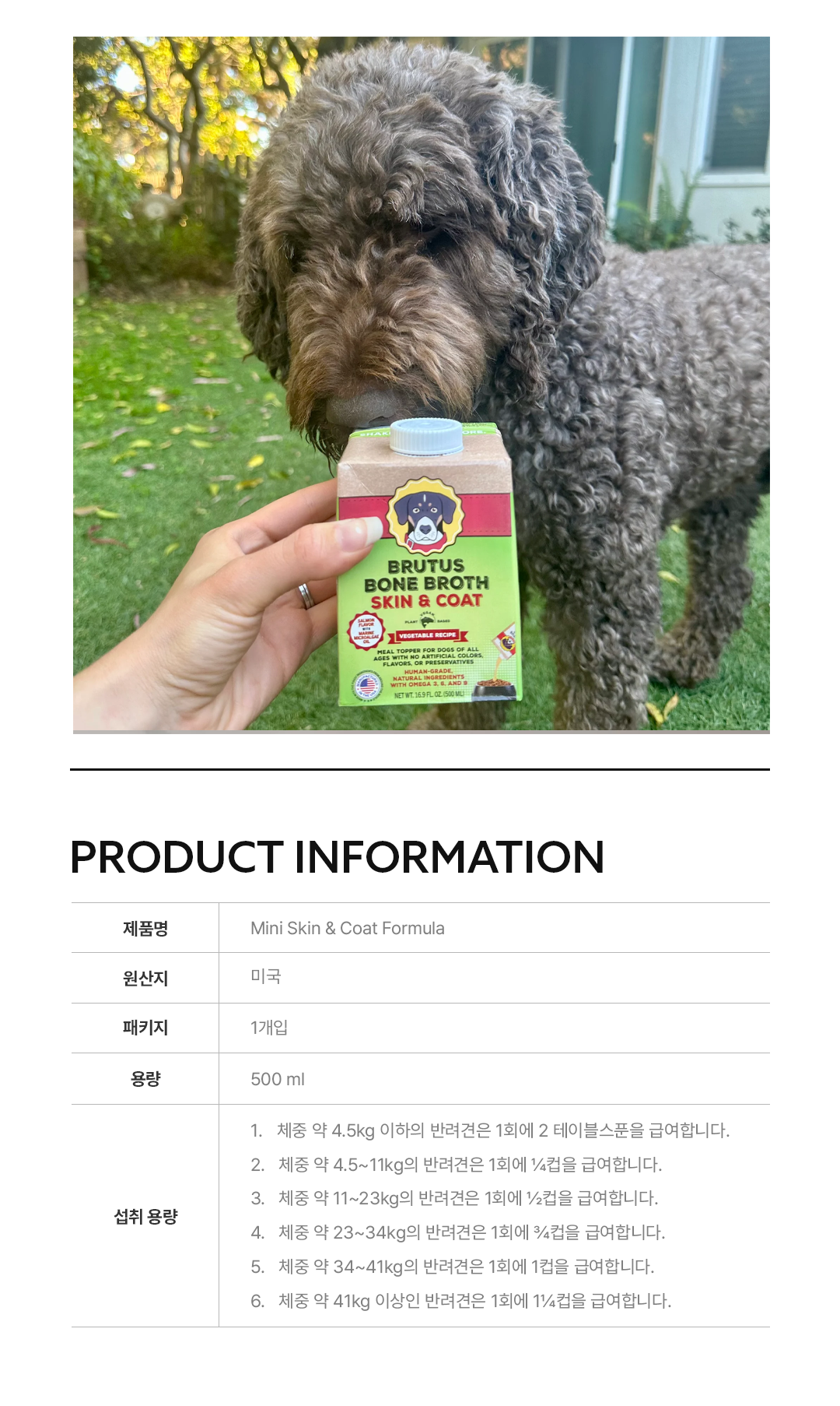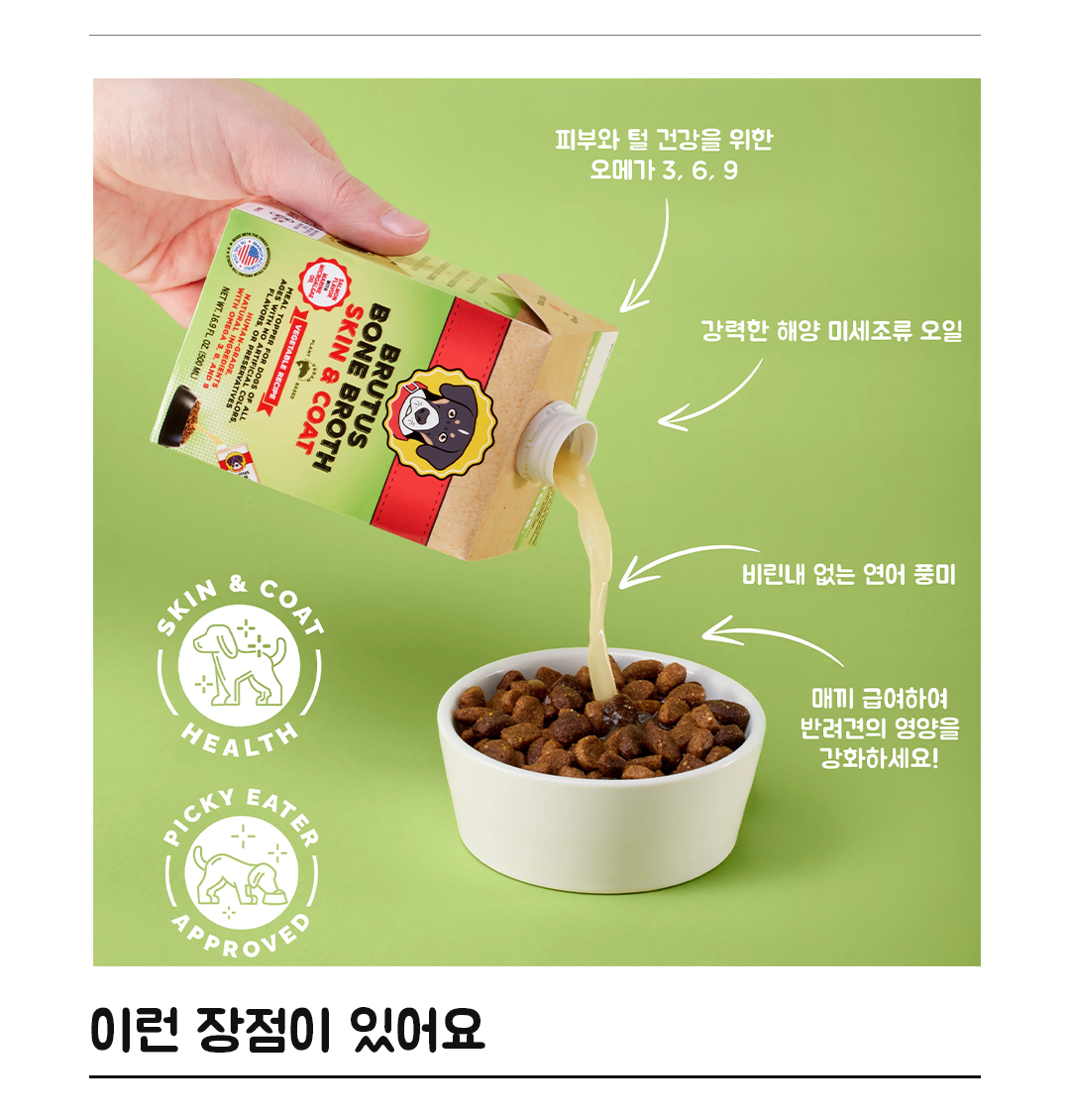매일매일 반려동물의 아름다움과 건강을 동시에 챙길 수 있는 프리미엄 천연 뼈육수로, Brutus Broth의 사랑과 정성이 담긴 특별한 선택입니다.