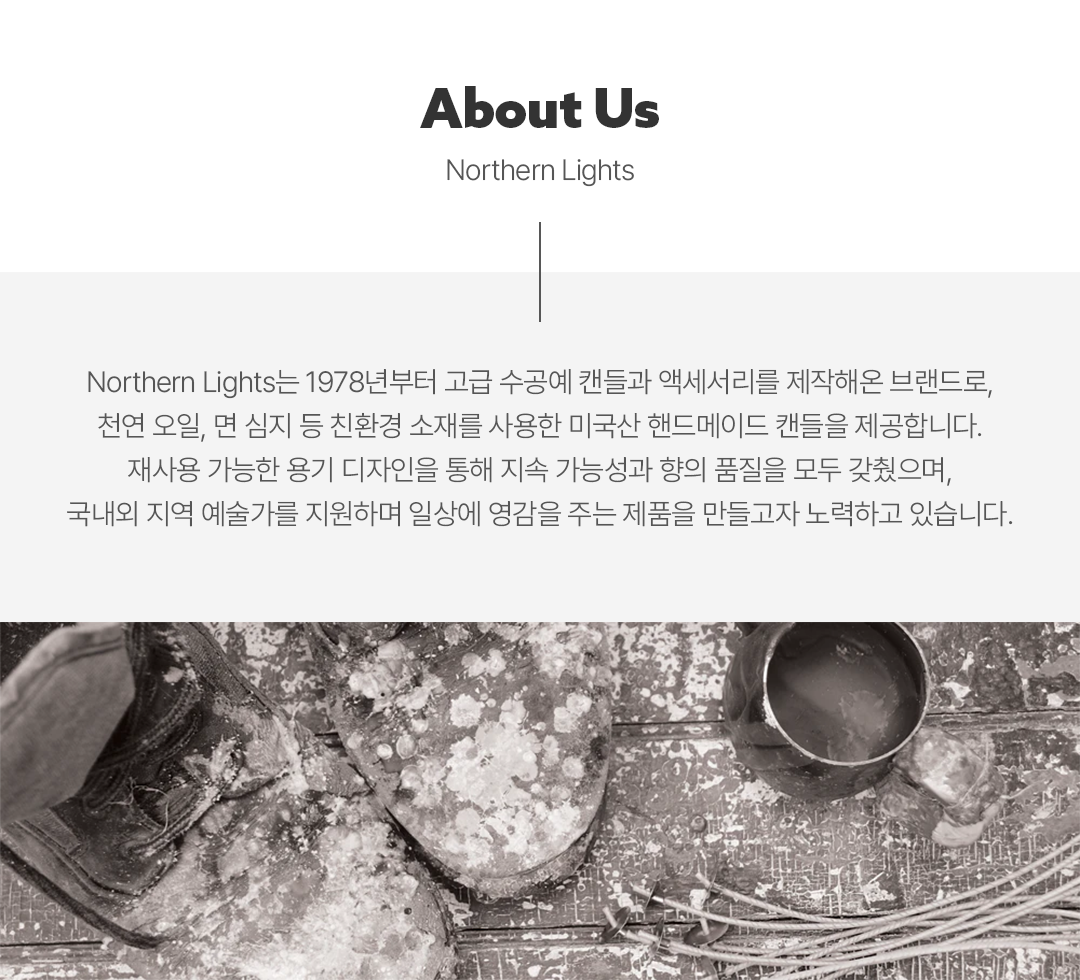 40년 이상 촛불의 온기로 세상을 밝혀온 Northern Lights는 "창의적으로 디자인되고 사회적으로 책임감 있는 제품을 시장에 선보이며 매일 영감을 주는 것"을 미션으로 삼고 있습니다.