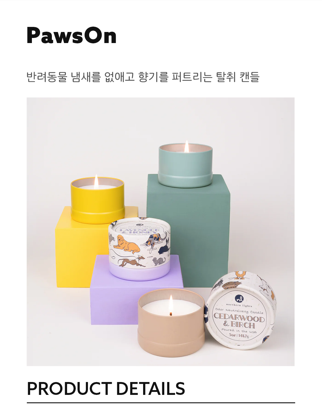 반려동물 가정의 특별한 니즈를 깊이 이해한 Northern Lights는 Pawson 라인을 통해 완전히 새로운 캔들 카테고리를 개척했습니다.