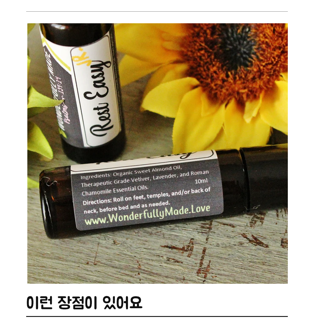 캐리어 오일과 미리 희석되어 있어 피부에 바로 사용할 수 있으며, 편리한 롤온 타입으로 언제 어디서나 쉽게 사용할 수 있습니다.