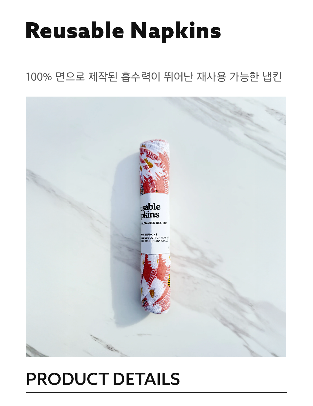 Lauren Alexander Designs의 Reusable Napkins는 일회용 종이 냅킨을 대체하는 친환경 실천 아이템입니다.