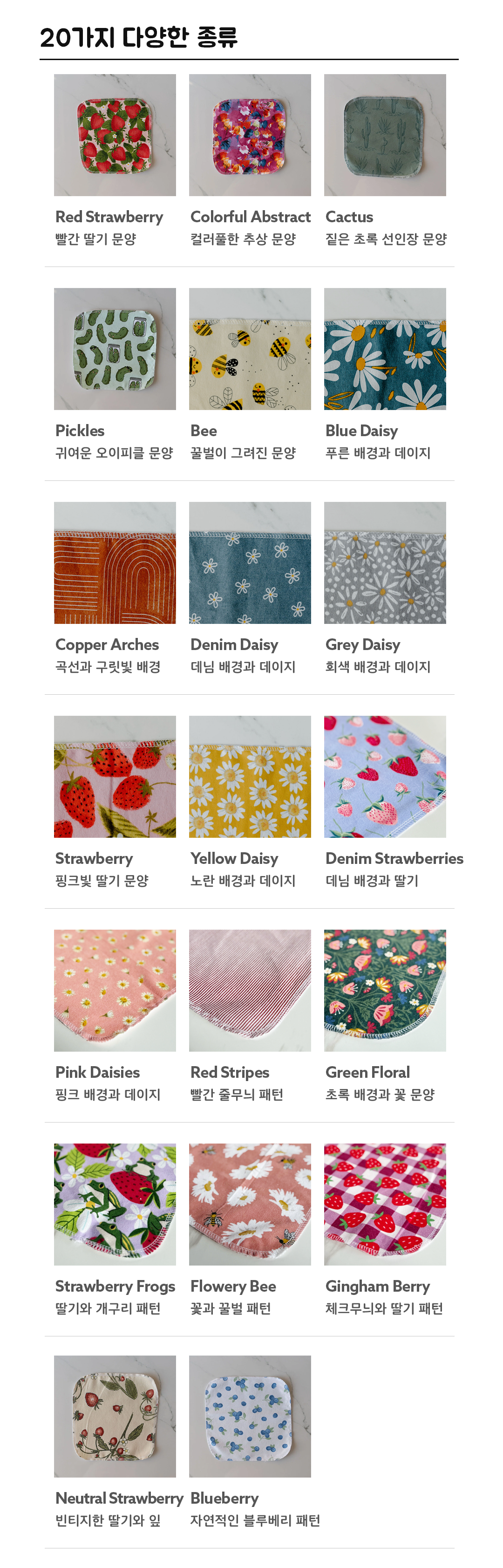 지속가능한 생활을 귀엽고 실용적으로라는 철학 아래, 집안에서 가장 많이 버려지는 일회용 제품들을 대체할 수 있는 재사용 가능한 핸드메이드 제품을 만들고 있습니다.