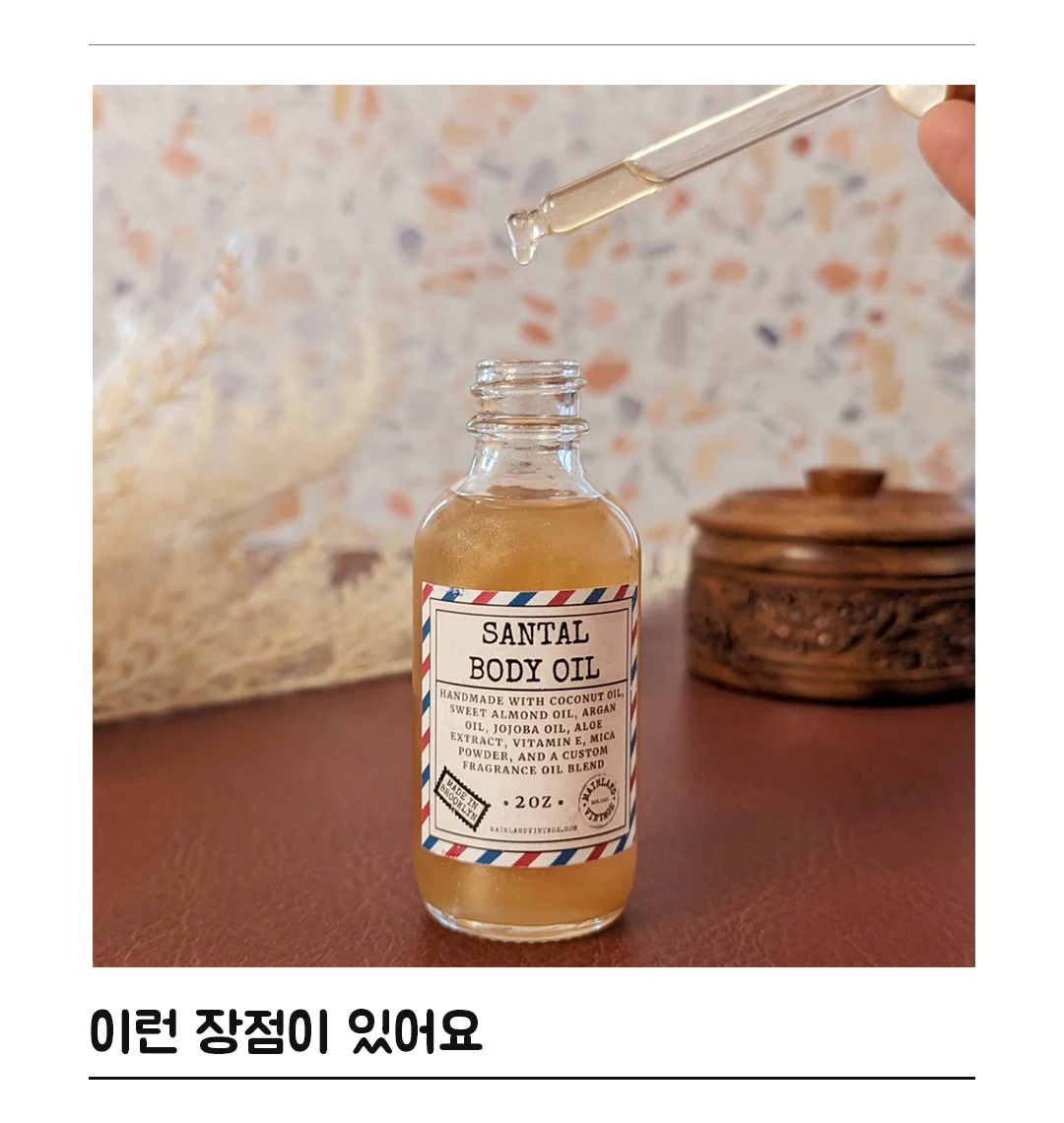 시중의 일반 바디오일은 값싼 미네랄오일이나 합성 오일, 인공 향료와 보존제를 사용해 끈적임, 피부 트러블, 인위적인 향이 남는 경우가 많습니다.