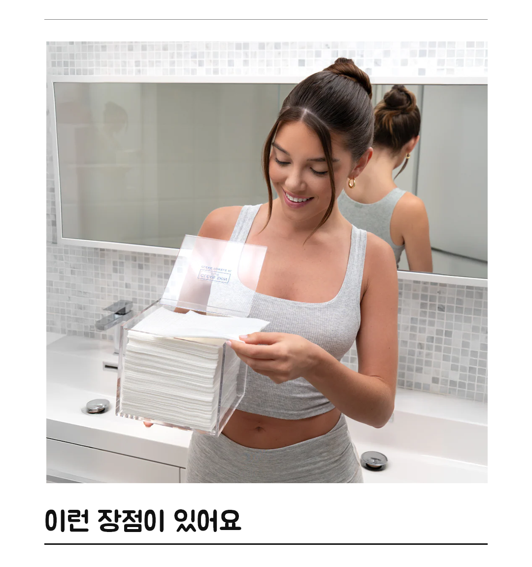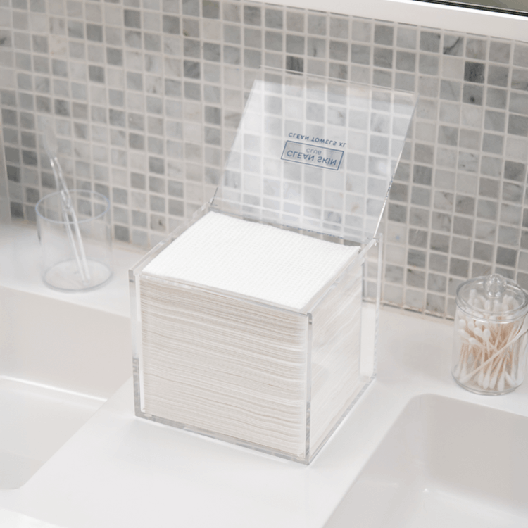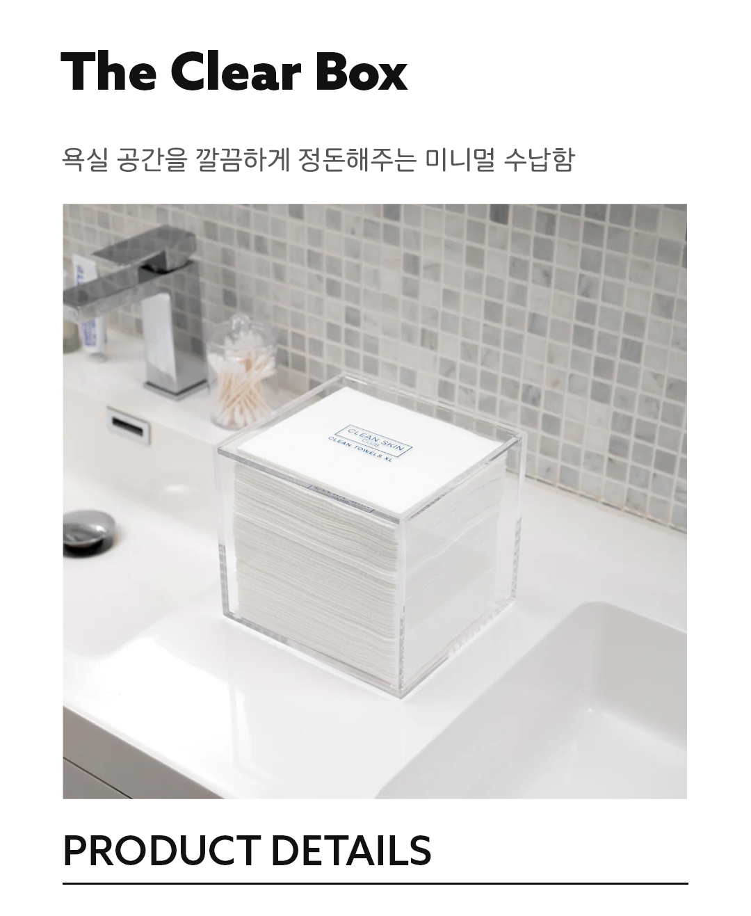 The Clear Box는 50장용 Clean Towels XL을 보관할 수 있는 투명한 아크릴 수납 박스입니다.