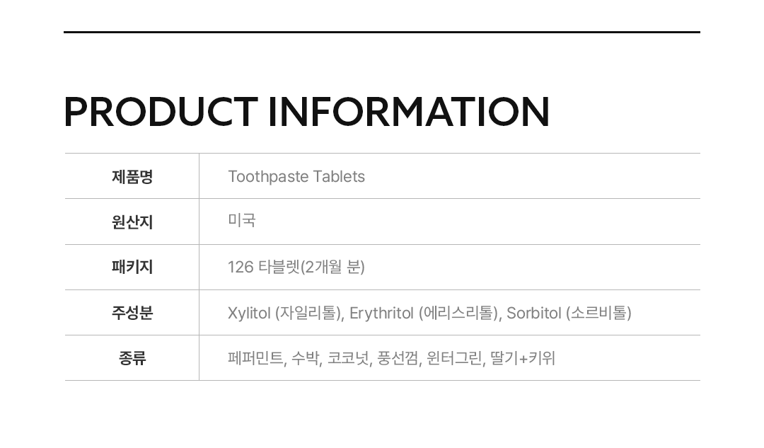 작은 알약 형태의 고체 치약으로, 입안에서 씹으면 풍부한 거품이 생성되어 기존 치약과 동일한 세정 효과를 제공합니다.