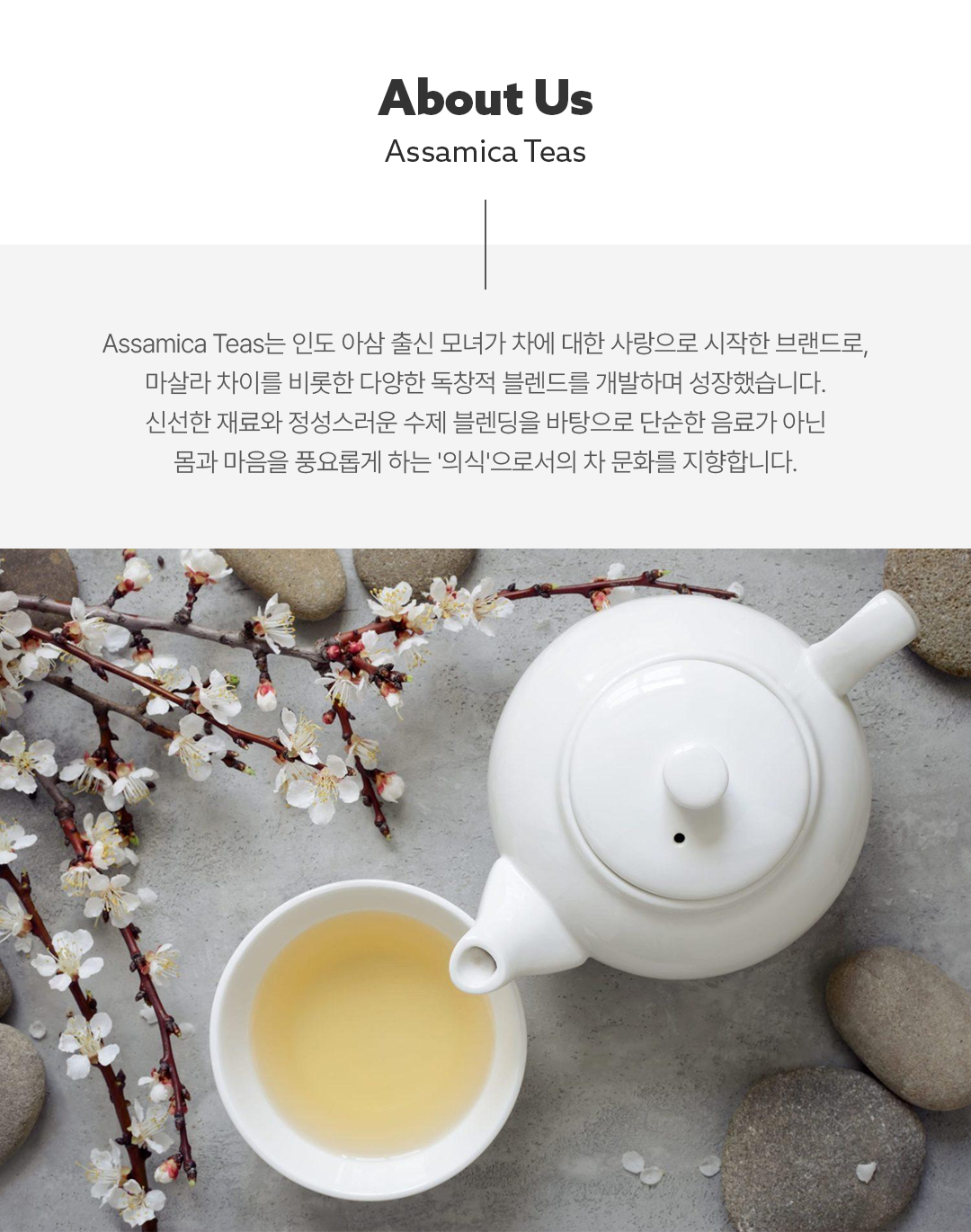 Assamica Teas는 인도 북동부의 청정한 자연 속에서 자란 유기농 아삼(Assam) 찻잎을 기반으로, 오랜 전통과 현대 과학이 조화를 이루는 치유의 차 문화를 전파하고자 시작된 브랜드입니다.