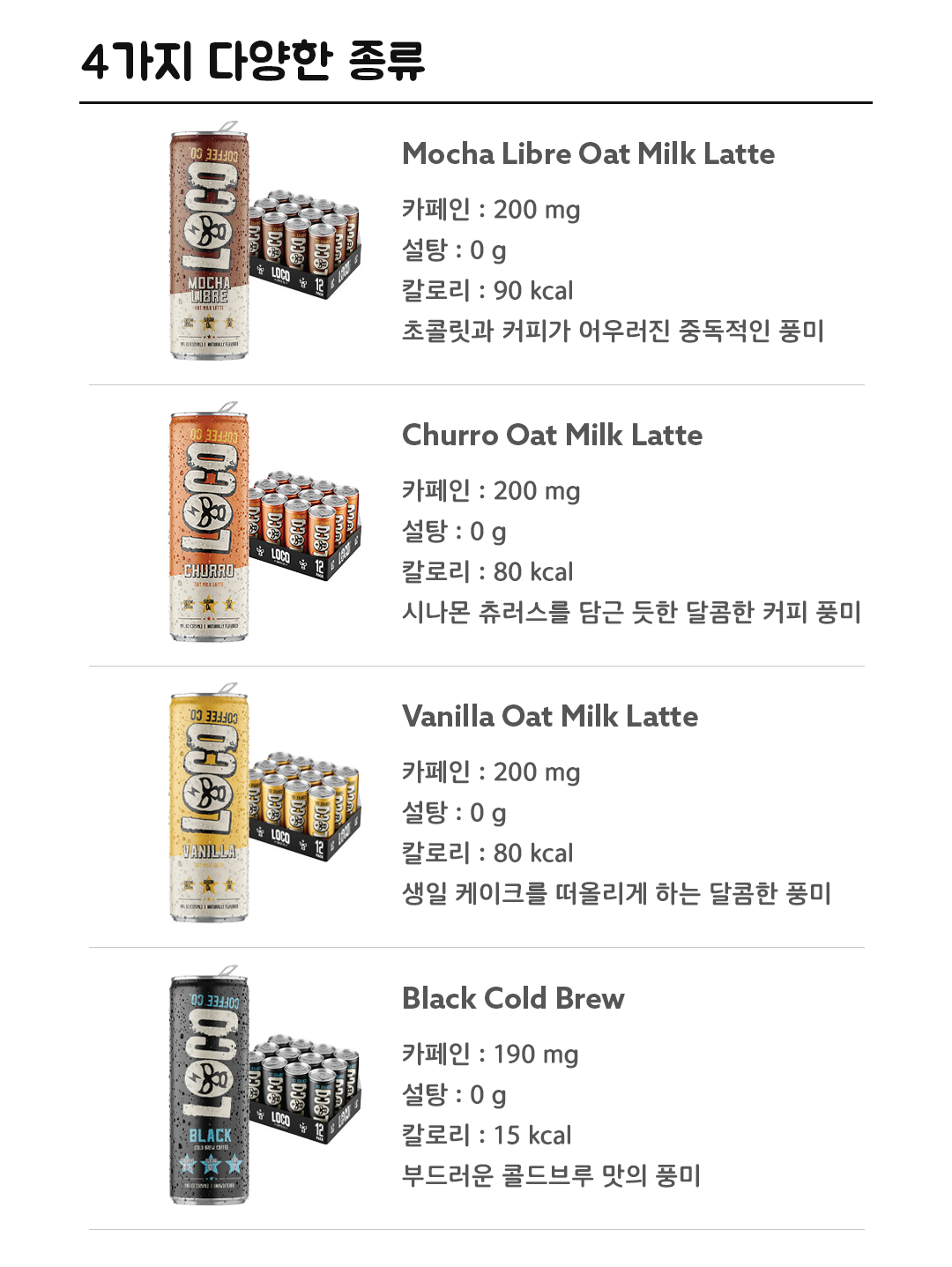 설탕 없이도 자연스러운 단맛을 구현했으며, BCAA, 마카, MCT 오일 등 각 제품마다 특별한 기능성 성분을 함유해 단순한 커피를 넘어 웰빙 음료로 업그레이드되었습니다.