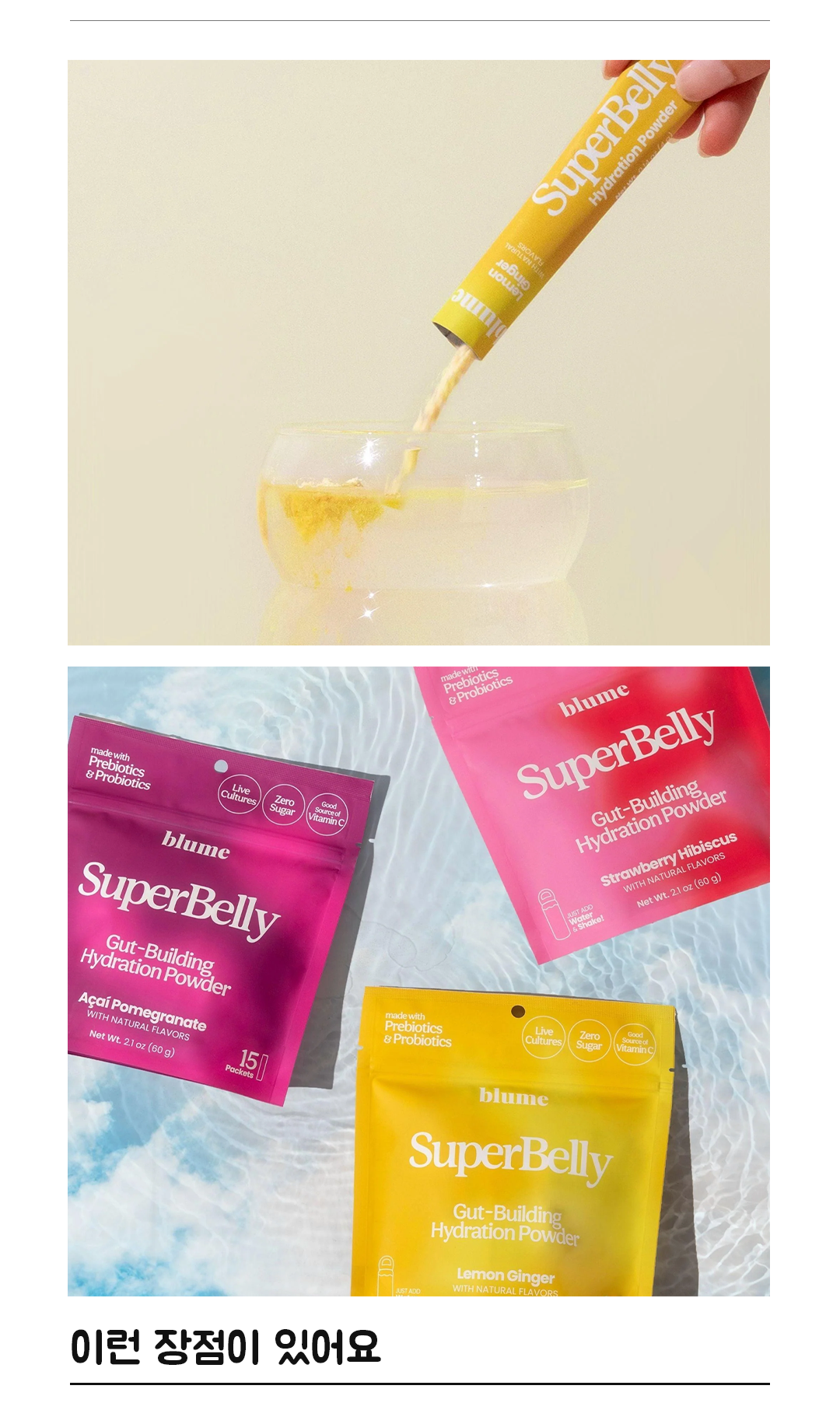 장 건강과 수분 공급은 서로 연결되어 있으며, 최상의 컨디션을 유지하는 데 필수적입니다. Blume의 베스트셀러 제품인 SuperBelly는 바로 이 두 가지 요소를 완벽하게 결합한 혁신적인 솔루션입니다.