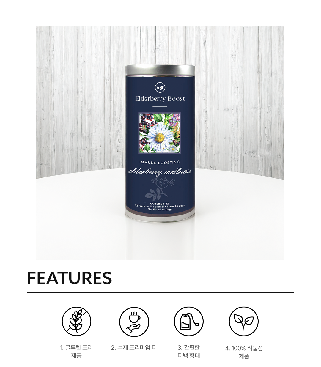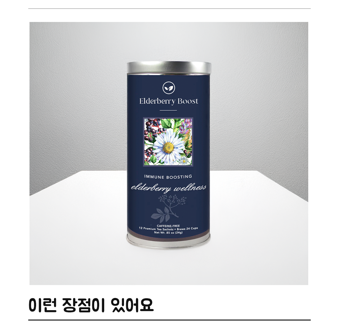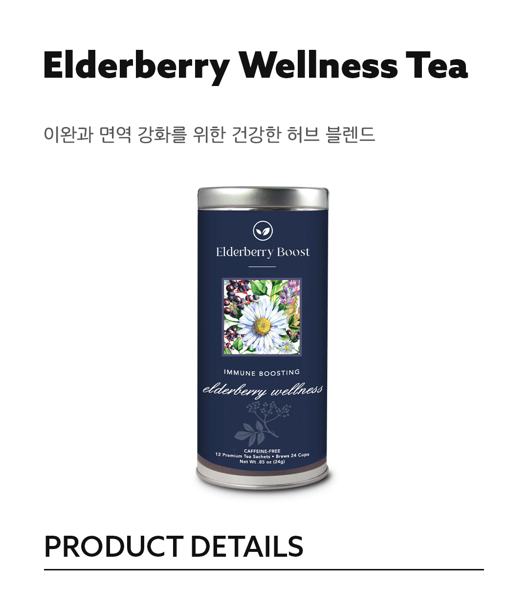 엘더베리 웰니스 티는 면역력 강화와 일상 휴식을 동시에 제공하는 프리미엄 허브 블렌드 차입니다.