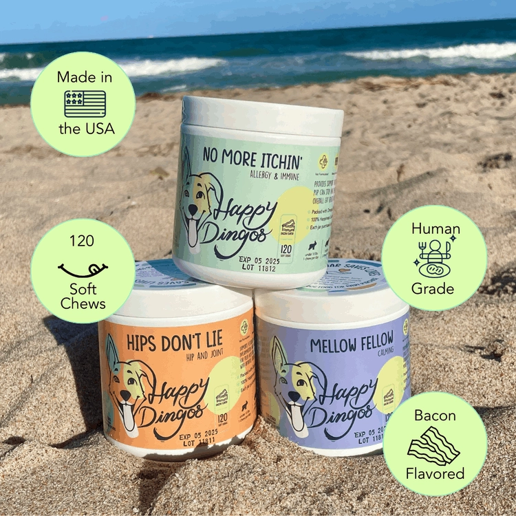 Happy Dingos의 Mellow Fellow는 창립자 Alfonso와 Nataya의 반려견 Dobby의 일상적인 스트레스와 불안감, 그리고 음식 알레르기 문제를 해결하기 위해 개발된 특별한 제품입니다.