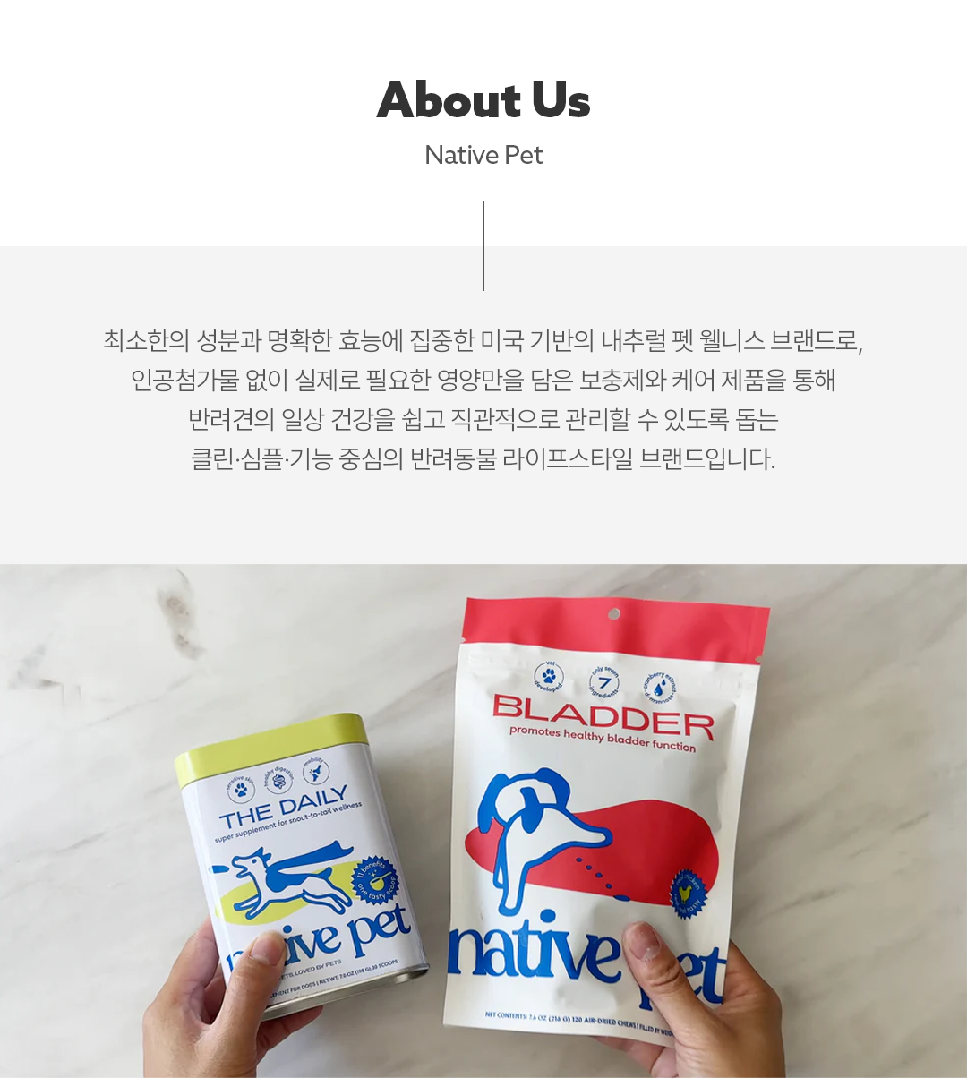 Native Pet은 반려견의 건강한 삶을 위해 탄생한 미국의 프리미엄 펫 영양 브랜드입니다.
