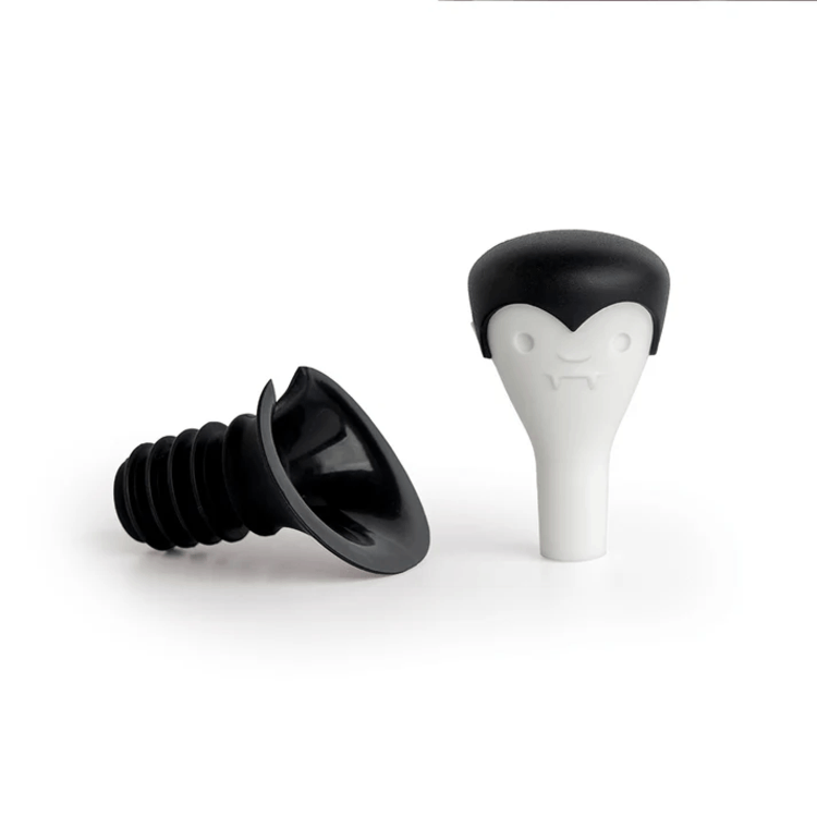 Count Corkula’는 와인 병에 꽂으면 마치 뱀파이어가 송곳니를 꽂은 듯한 귀여운 병마개이자 디캔터(포어)로, 병에 꽂아 그대로 따라 붓거나 밀폐용 마개로 사용할 수 있는 2‑in‑1 기능을 갖췄습니다.