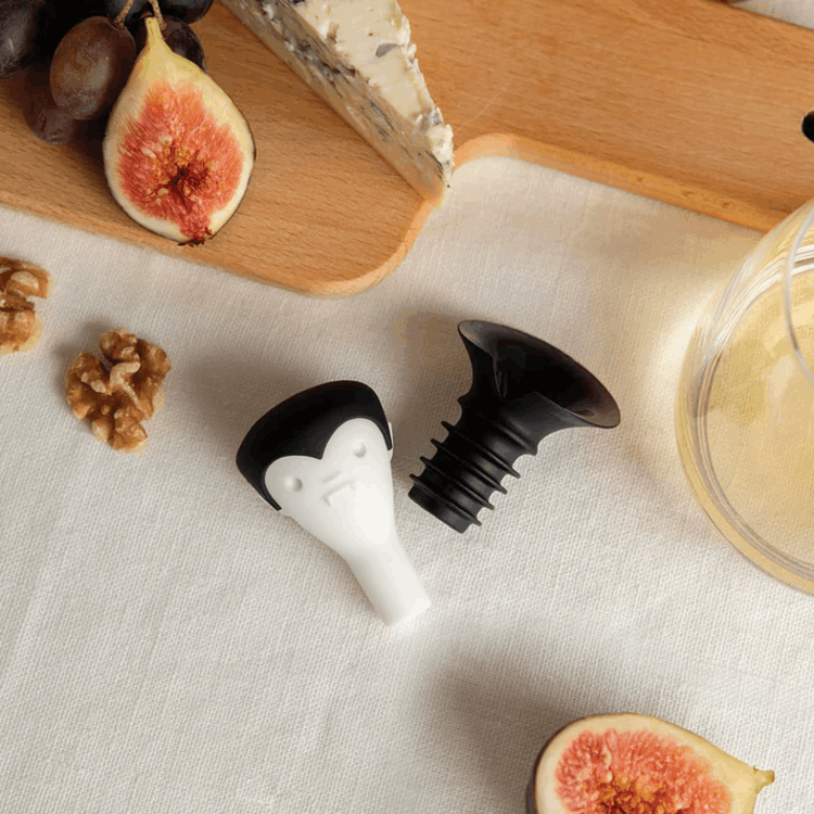 Count Corkula의 머리 부분이 와인 스토퍼로 작동하여 공기 유입을 차단해 와인의 산화를 방지하고, 동시에 와인을 따를 때는 매끄러운 주둥이 역할을 하여 한 방울도 흘리지 않고 깔끔하게 따를 수 있습니다.