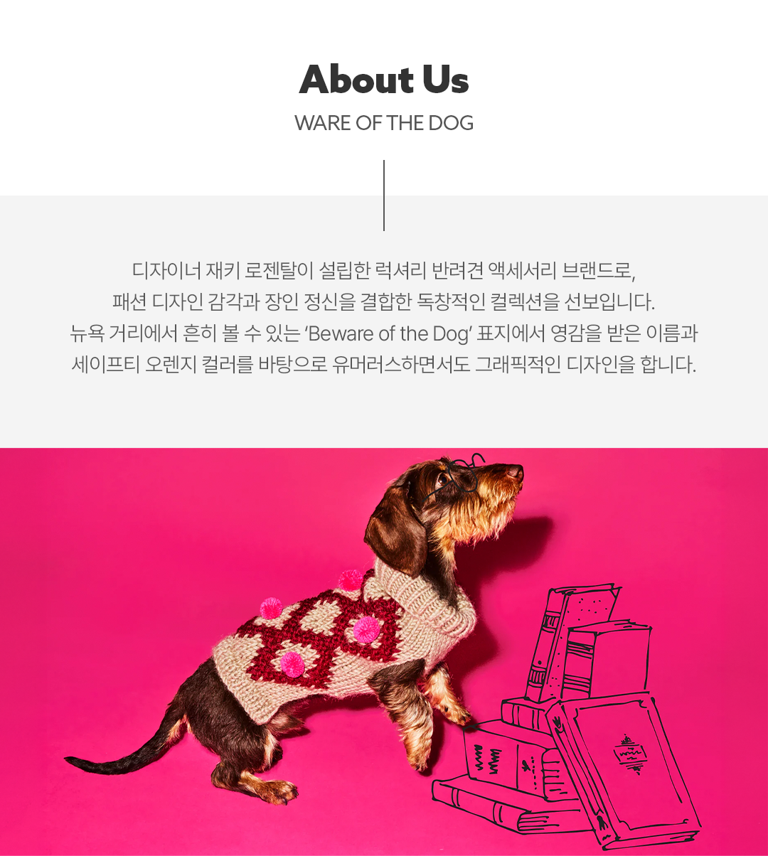 Ware of the Dog는 뉴욕에서 시작된 반려동물 라이프스타일 브랜드로, “반려견도 우리의 라이프스타일을 함께 누릴 자격이 있다”는 철학을 바탕으로 탄생했습니다.