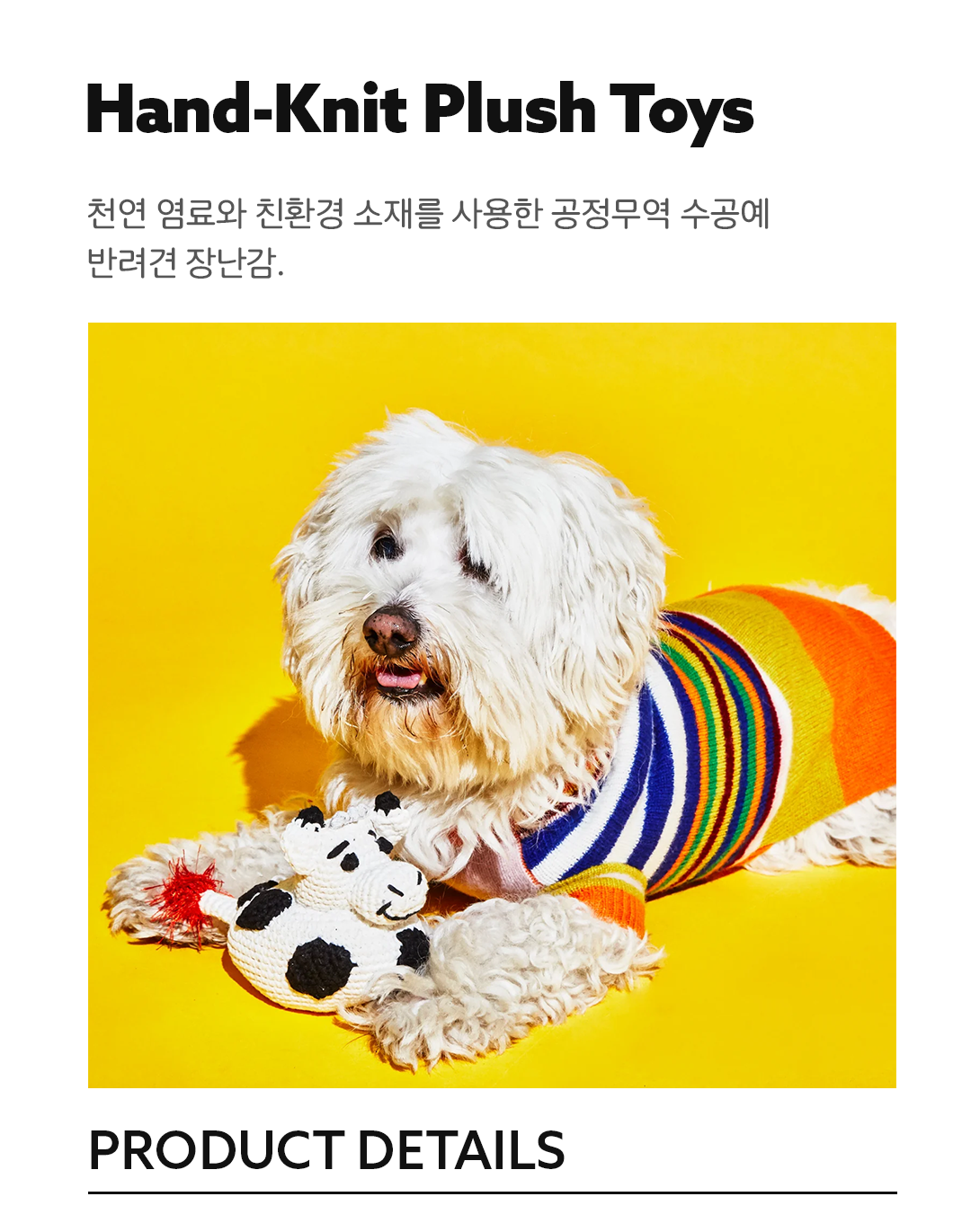 뉴욕 라이프스타일 브랜드답게 세련된 색감과 귀여운 캐릭터 디자인이 특징이며, 반려견 장난감이면서도 집 안 인테리어와 잘 어울리는 감각적인 스타일을 갖추고 있습니다.
