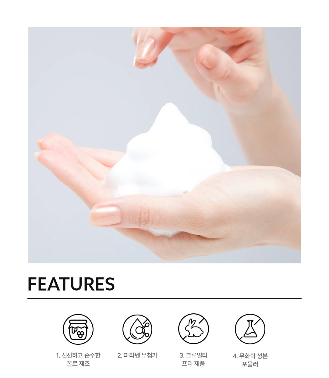 제형: 부드러운 포밍 타입, 적은 양으로 풍부한 거품 생성