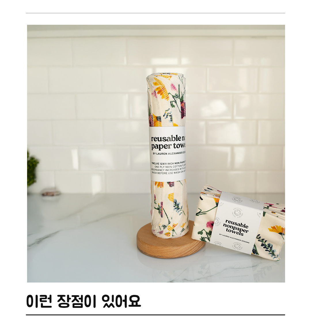 Reusable Non Paper Towels는 종이 타월을 대체할 수 있는 프리미엄 재사용 천으로, 100% 면 플란넬 소재에 오버록 처리된 가장자리로 내구성을 강화하고, 세탁할수록 흡수력이 높아지는 점이 특징입니다.