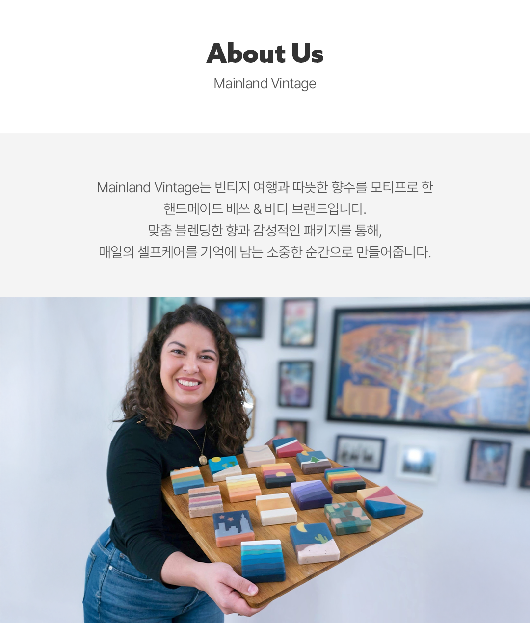 Mainland Vintage만의 독창성은 단순한 비누가 아닌, 각각의 향과 디자인이 특정한 장소나 시대를 연상시키도록 커스텀 디자인된다는 점입니다.