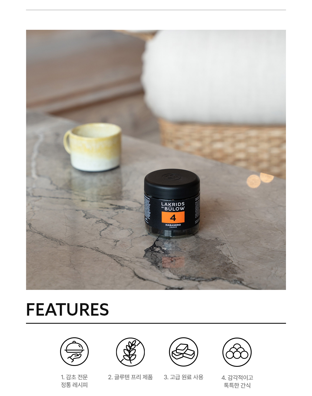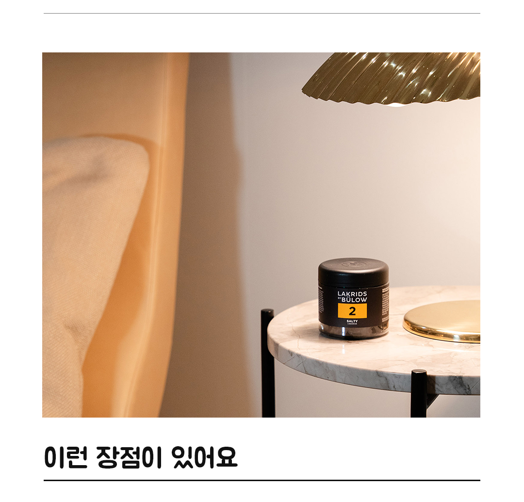 스칸디나비아 전통의 감초를 현대적으로 재해석하여 감초를 처음 접하는 사람도 쉽게 즐길 수 있도록 만든 정교하고 섬세한 제품입니다.