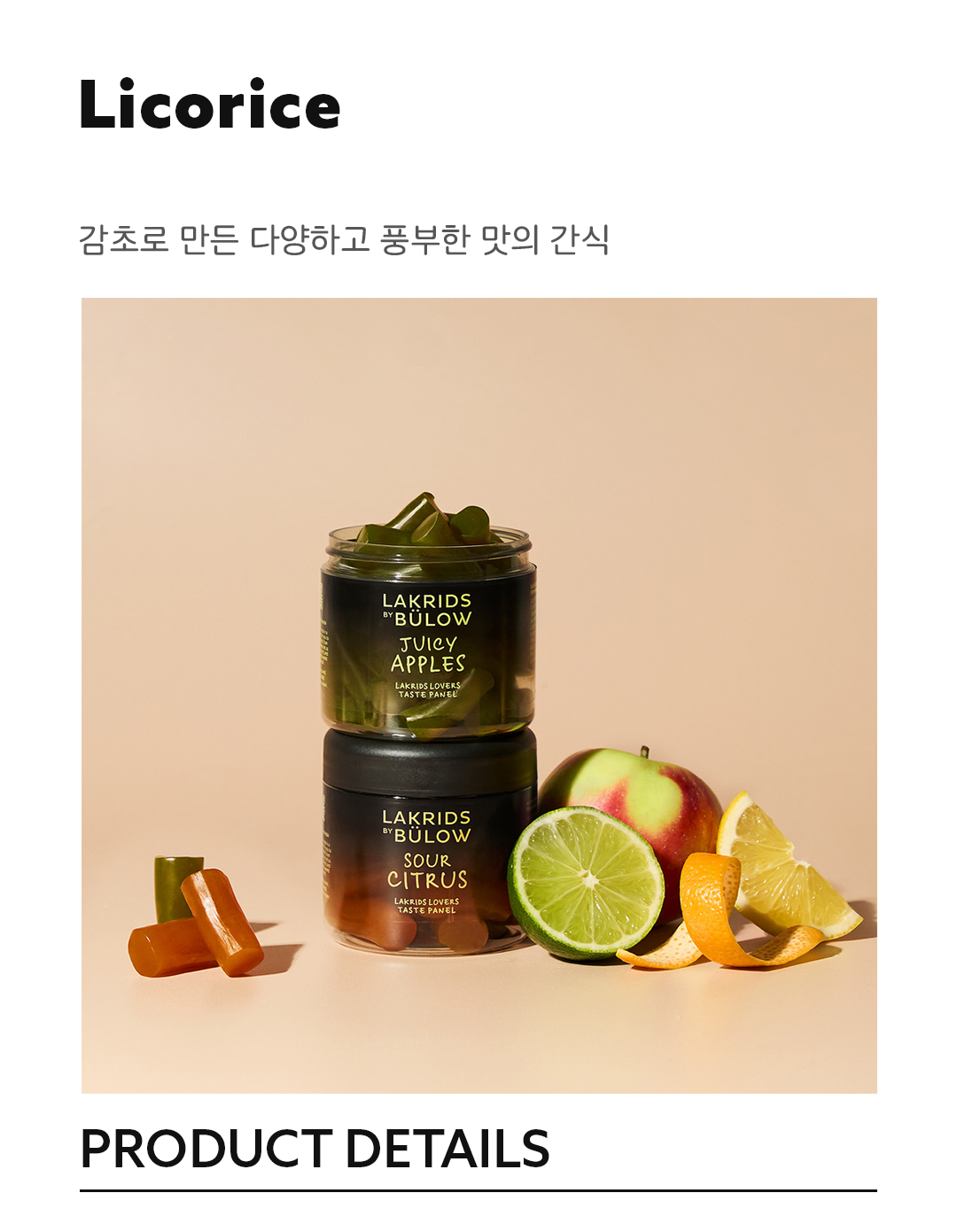 Lakrids by Bülow는 고품질 수제 리코리스(감초 사탕)를 통해 전 세계에 북유럽의 감성을 전하는 덴마크 브랜드입니다.
