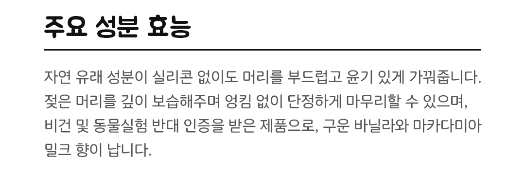 효과: 깊은 보습, 모발 영양 공급, 윤기 강화