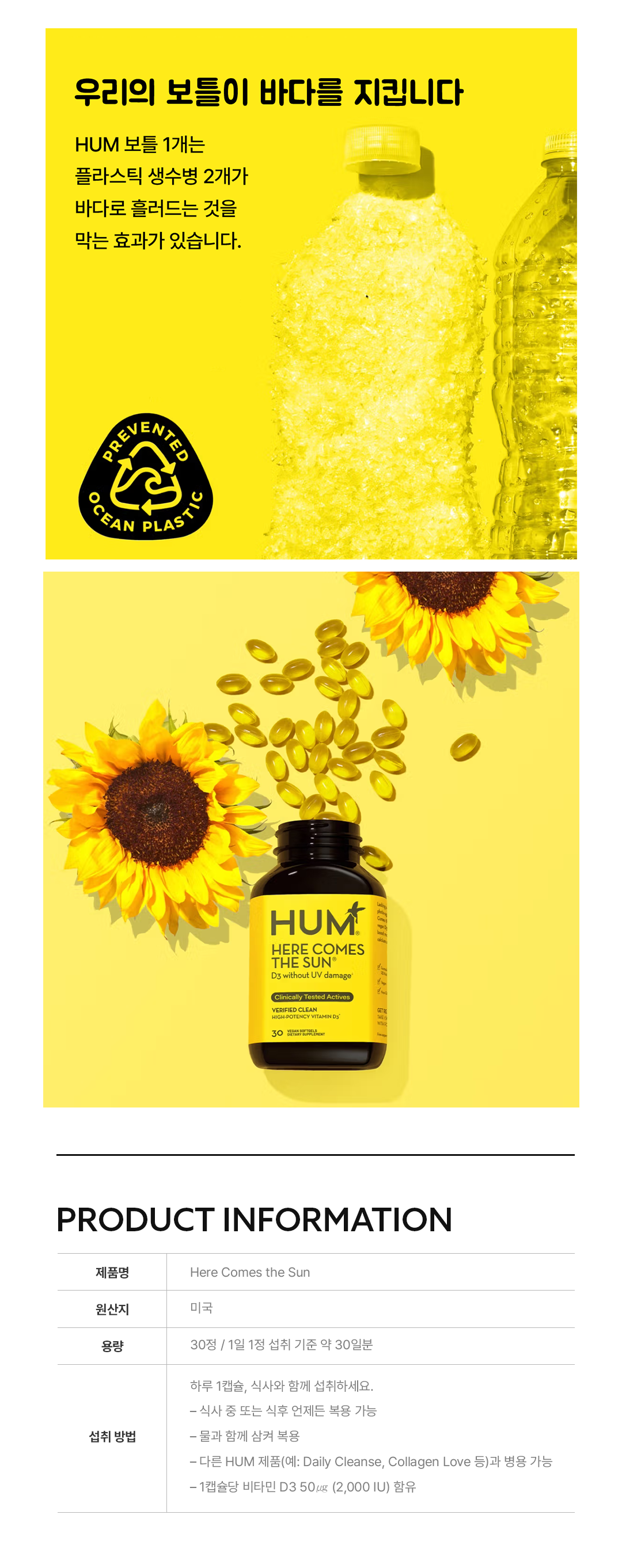 네! Here Comes the Sun은 2000 IU의 비타민D3를제공합니다. 비타민D3의 일일 상한 섭취량은 4000 IU입니다. 두 제품 모두 필요한지는 개인의 식단과 라이프스타일에 따라 다르므로, HUM 등록 영양사와 상담하시는 것을 권장합니다. 비타민D는 칼슘 흡수를 돕기 때문에 함께 복용하면 시너지 효과가 있을 수 있습니다.